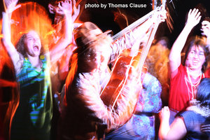 Out of all the bands at this gig, Stefana Fratila is the one who has had the most success around town. Her opening was timid, and she appeared conscious of the fact that her peers were attending this gig. But as she moved thru her set her confidence seemed to return and the performance improved. Stefana is touring Europe soon, a big step in her much deserved success as an artist. 'Vista Voyager' wrapped it up with Stefana switching to her third instrument of a short set, the Ukulele. By this point the crowd had started dancing and enjoying her 'out there' style.
