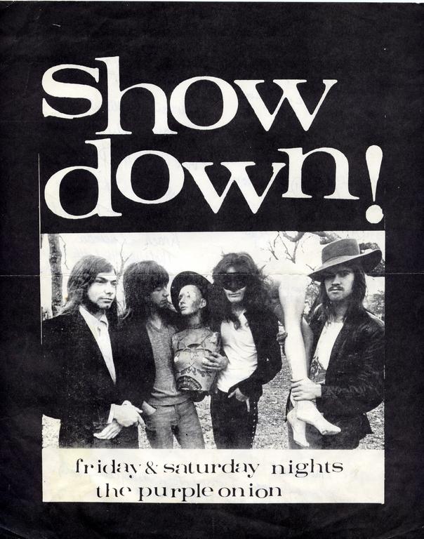 showdown did 2-4 nights/per wk. around 72-74,( purple onion/brown jug).there were but four members,three of whom were with Riff-Raff in 78.