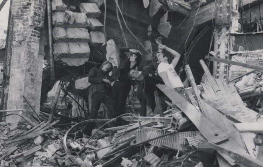 Photo taken inside the demolition of the Capital Theatre on Yates Street in 1980 courtesy of Fred Weyerman. Formed September 1979,after Murray Acton and Brian Whitehead split with Steve Andreas and Eddie Cliffe of Airbourne.First gig October 1979 (house party out in woop woop). First line up Murray Acton, Trevor Hagen, Lesley Watson, John Mears (drums). Acquired Fred Weyerman(drums) around November / December 1979 shortly after gig at OAP Hall. Self managed until June 1980, all posters copyright of Lesley Watson. Final gig at the Smiling Buddha in Vancouver Sept 1980. Did gigs with Modernettes, DOA, Keys, Pink Steel, Pat Bay & the Malahats.