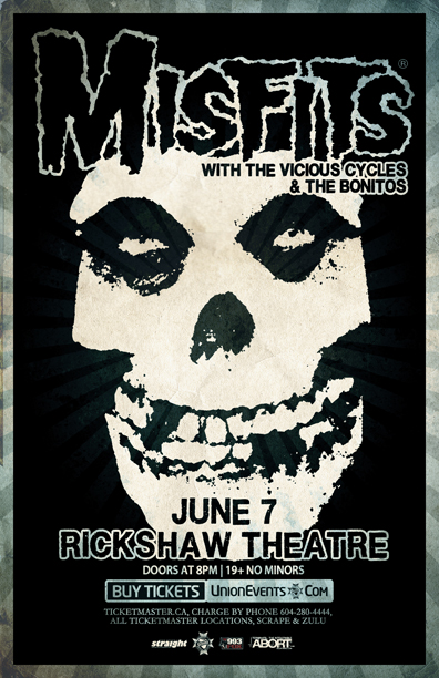 The Misfits: The Misfits, The Vicious Cycles, The Bonitos @ Rickshaw Theatre Dec 31 1969 - Feb 22nd @ Rickshaw Theatre