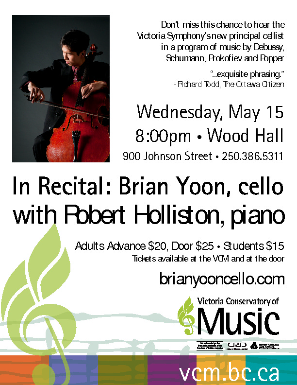 Hear two of Canada’s finest musicians in one intimate setting. Robert Holliston (piano) and Brian Yoon (Principal Cello, Victoria Symphony).