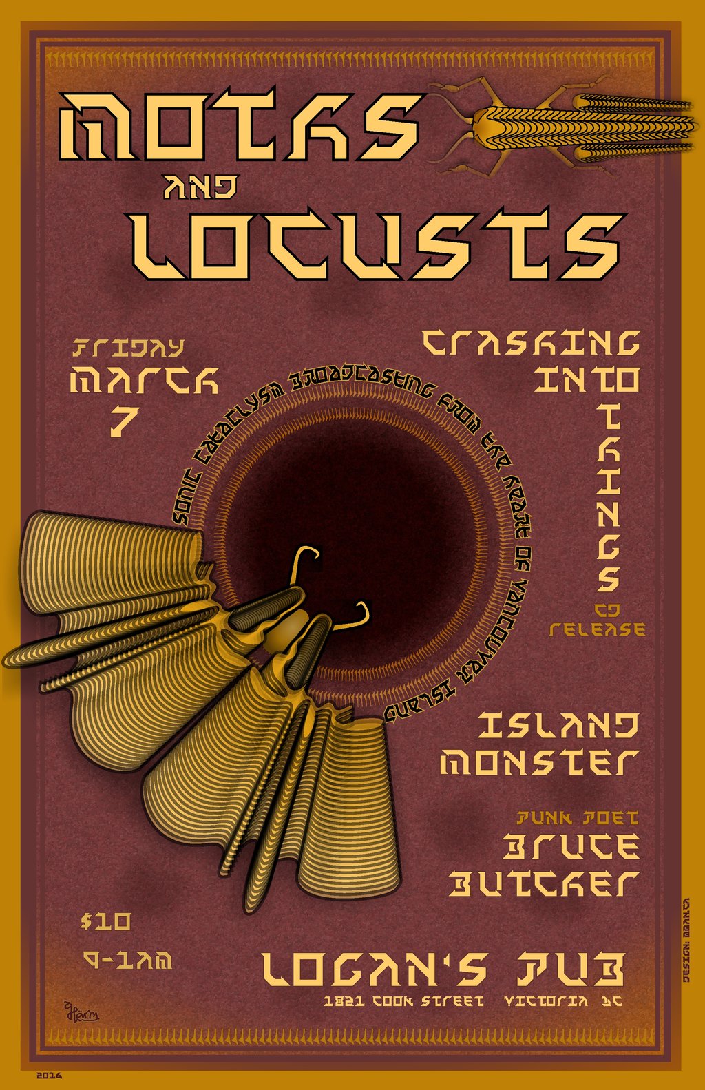 March 7 at Logan's: Moths and Locusts, Crashing Into Things, Island Monster, Bruce Butcher @ Logan's Pub Mar 7 2014 - Feb 2nd @ Logan's Pub