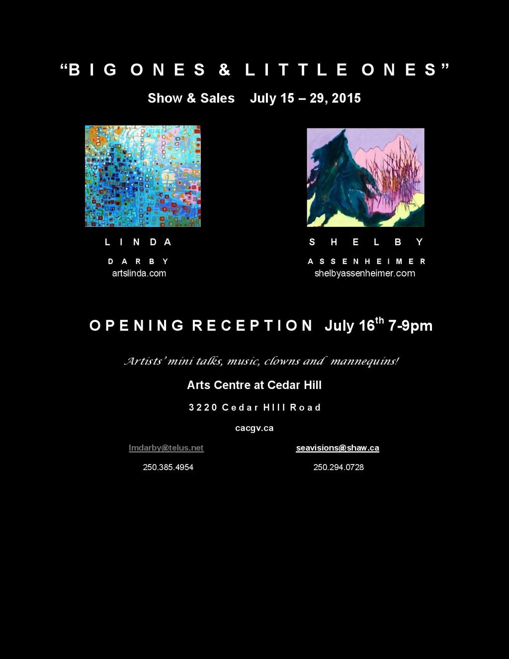 Thu. July 16th 2015 - Wed. July 29th 2015 Art Centre at Cedar Hill - CACGV Main Gallery Victoria BC Free