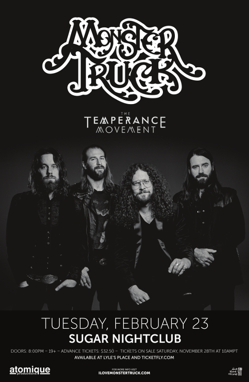 What started as a fun and albeit ‘selfish’ musical side-project, quickly gained momentum and took on a life of its own. Monster Truck self-released a self-titled EP produced by Gus Van Go & Werner F (The Stills, Preistess, Hollerado) in 2010 and followed up with The Brown EP (2011) produced by Eric Ratz (Billy Talent, Cancer Bats, Three Days Grace) on Indie powerhouse Dine Alone Records. The Brown EP aggressively showcased the band’s ability to keep a firm grasp in the classic roots that enabled them, while staying contemporary and true to their vast influences. Singles “Seven Seas Blues” and “Righteous Smoke” became runaway hits reaching Top 10 on Canadian Rock radio and true to their notorious maxim “Don’t F*ck With The Truck”, the band hit the road with a vengeance. Tours included a 2011 cross-Canada sold-out run with The Sheepdogs. Additional tours followed in 2012 when Monster Truck was handpicked to open for Slash on his North American tour, as well as sold-out dates in support of legends Deep Purple.