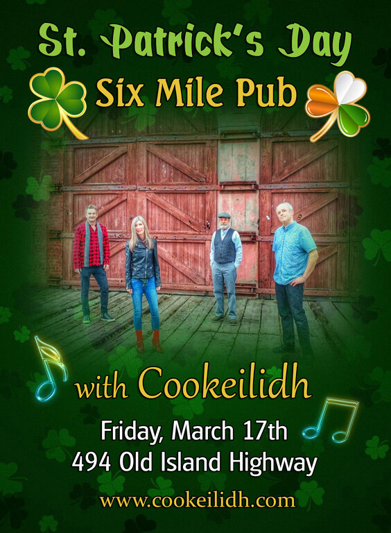 St. Patrick's Day at Six mile Pub featuring Cookeilidh - Feb 13th @ Six Mile Pub
