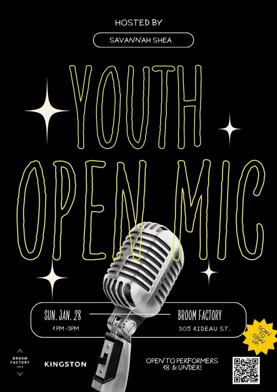 Mark your calendars for the Broom Factoryβs first YOUTH OPEN MIC! Whether you're a budding songwriter, a gifted musician, or a passionate poet, this stage is yours! π
