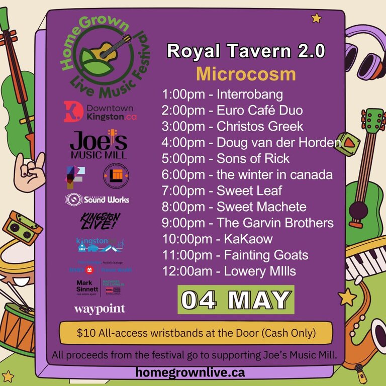 HomeGrown Live Music Festival: Interrobang‽, Euro Café Duo, Christos Greek, Doug van der Horden, Sons of Rick, The Winter in Canada, Sweetleaf, Sweet Machete, The Garvin Brothers, KaKaow, The Fainting Goats, Lowery Mills
