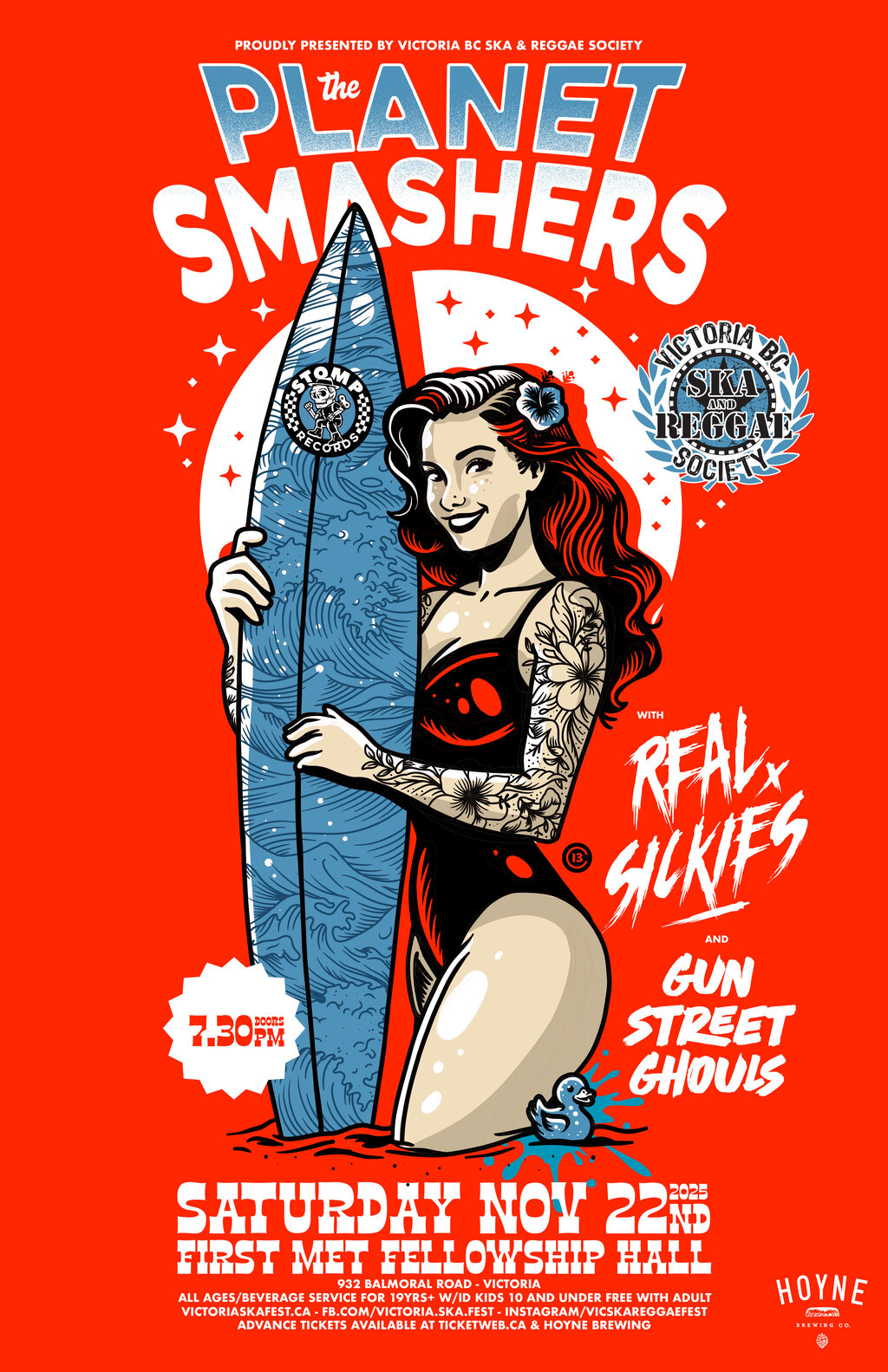 Joining The Planet Smashers will be Real Sickies from Edmonton who are influenced by bands such as The Ramones, Teenage Bottlerocket and early Green Day. They have also played on our past punk party shows with The Real McKenzies. In 2018 Ben Disaster their lead singer actually met Mario Nieva (bass player of The Real McKenzies) in a BC Ferries restroom while they were both on tour. Ben Disaster says, “We hit it off talking about mental health and love and music, basic bathroom talk. Mario ended up playing bass for us on the last night of the tour." Now we look forward to having them once again play with another one of our longtime Stomp Records friends - The Planet Smashers.