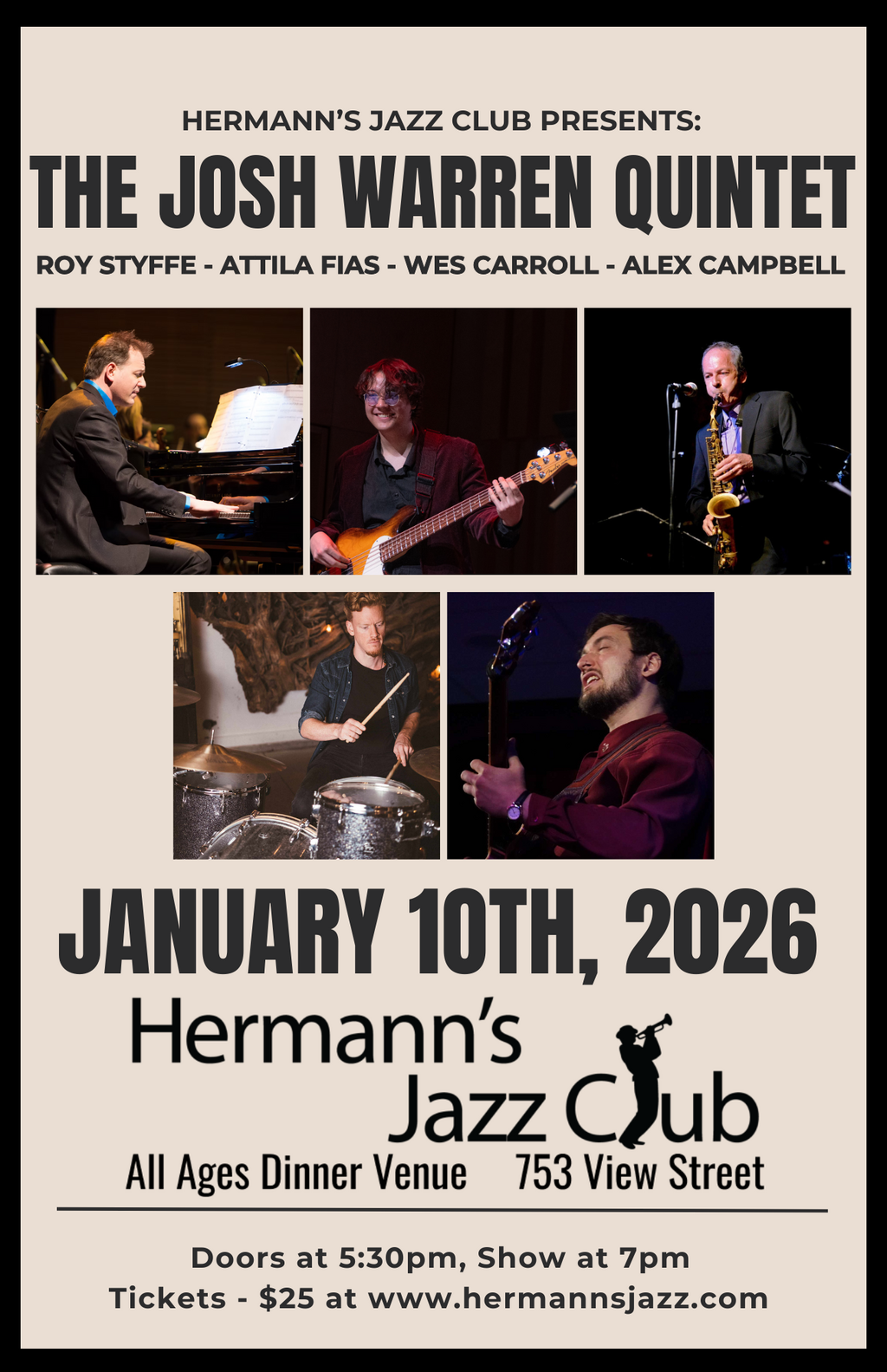 Back in town for one night only and accompanied by some of the best musicians on the west coast, Josh is thrilled to present a night of high-energy music - spanning original material by members of the band, as well as music by Kenny Garrett, John Scofield, Pat Metheny and more.