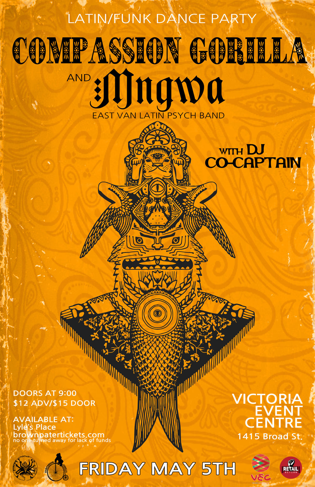 Mngwa is an 8-piece experimental Latin band based in Vancouver, but their spirit is rooted in the cumbia of South America. Far removed from a cohesive Latin music scene, Mngwa has created their own singular style, mixing psych rock, dub, hip hop, and surf influences into their afro-latin polyrhythmic pot. After 3 years of blasting unsuspecting Canadian audiences, Mngwa is pushing their northern strain of cumbia ever-further, reaching fans of Latin music worldwide.