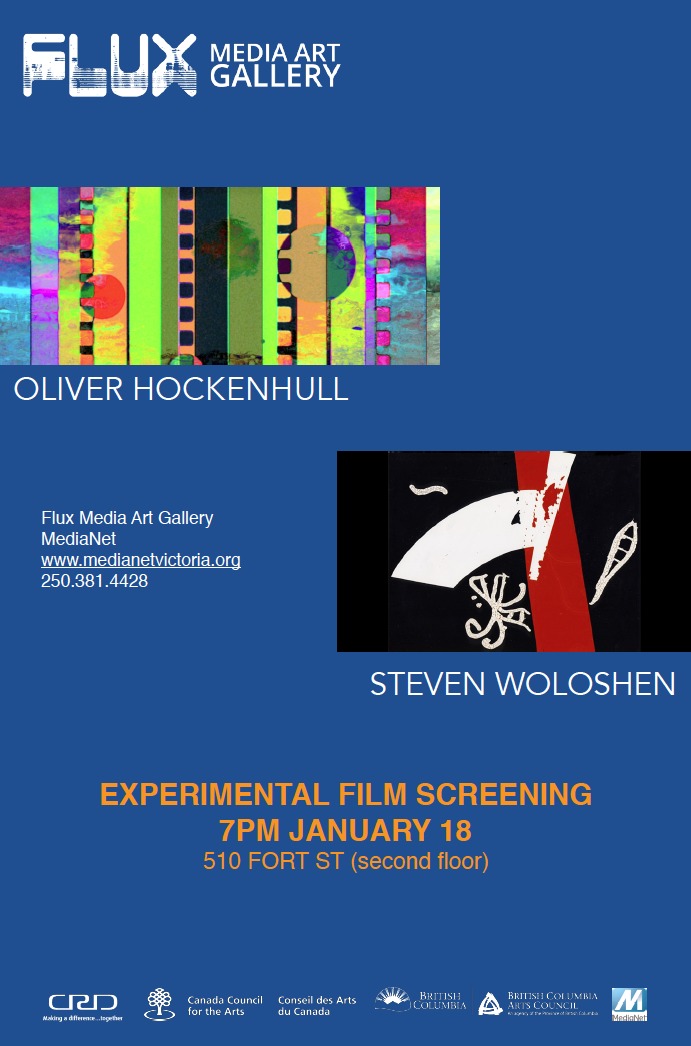 FLUX media art gallery presents short experimental films by two acclaimed contemporary Canadian media artists, Oliver Hockenhull from Vancouver, and Steven Woloshen from Montreal.