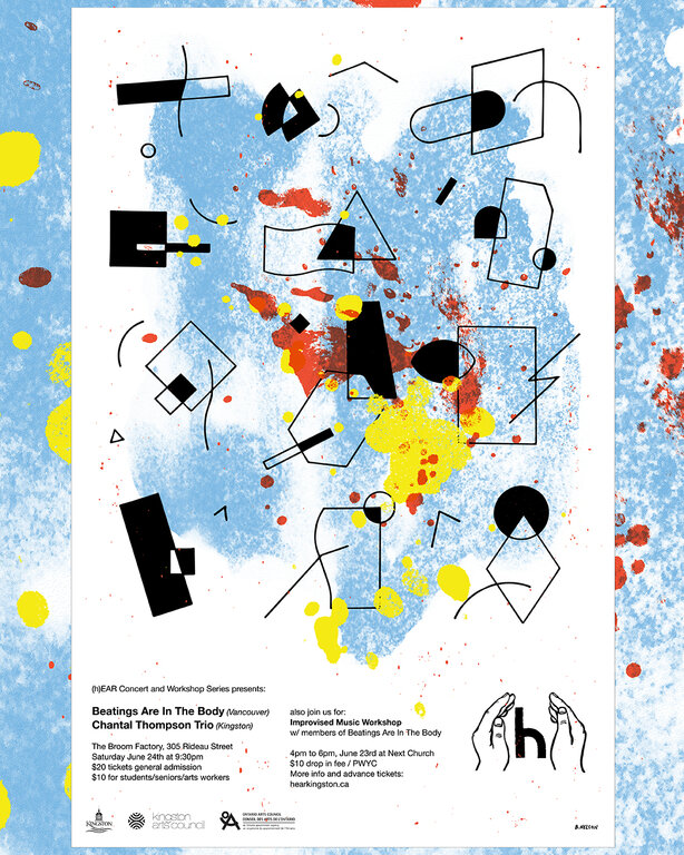 We're hosting Beatings Are In The Body, an exciting new trio with a debut album touring through Ontario / Quebec. They'll be doing a late show after the SPAF festivities on Saturday June 24th at 9:30pm at the Broom Factory. They'll be joined by the Chantal Thompson Trio. Also don't miss their workshop the day before at Next Church, 4pm to 6pm.
