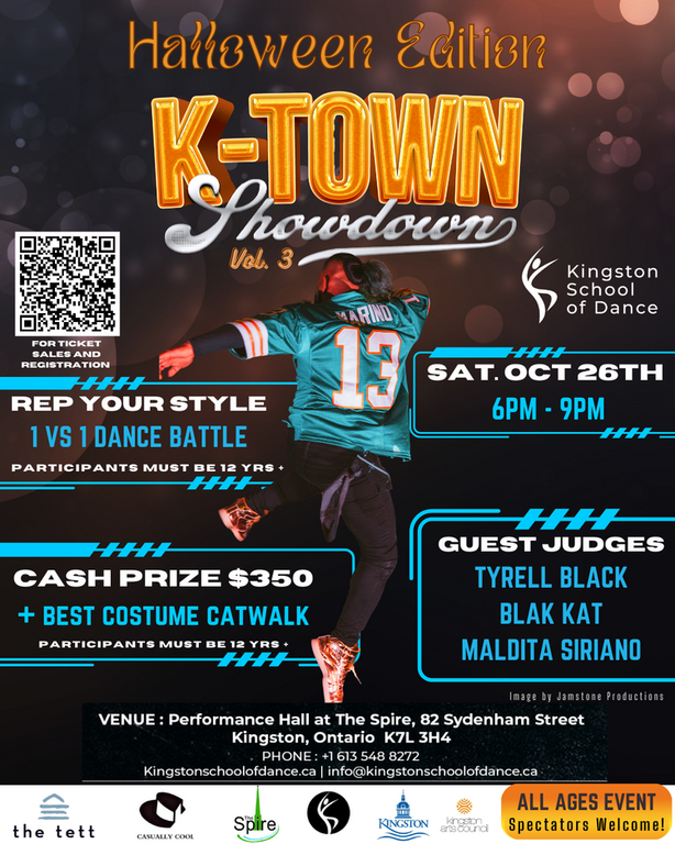 Kingston School of Dance will host its 3rd annual dance battle in October 2024. Over the course of the weekend, October 25th-26th-27th, dancers and dance enthusiasts can take part in dance workshops, artist discussions, and the main event - The K-town Showdown Dance Battle.