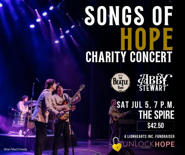 Get ready to experience the ultimate tribute to the legendary Beatles with The Beatle Band! This captivating musical ensemble pays homage to one of the most revered and influential pop-rock bands of all time. If you’re looking to enjoy some timeless tunes, our “Songs of Hope” fundraiser is a can’t miss event!